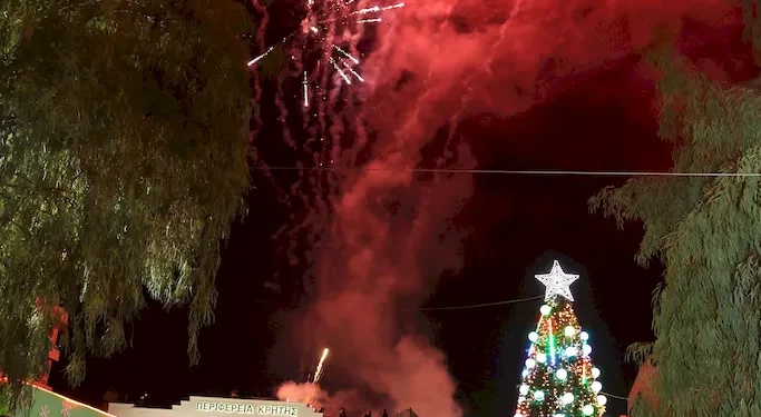 Φωταγωγήθηκε κι επίσημα το Χριστουγεννιάτικο δέντρο του Δήμου Ηρακλείου στην καρδιά της πόλης.