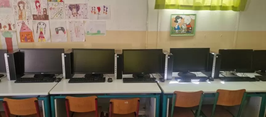 2ο Δημοτικό Σχολείο Κρουσώνα: Δημιουργία νέας δομημένης καλωδίωσης στο κτίριο και προμήθεια – εγκατάσταση πέντε νέων υπολογιστών στο σχολικό εργαστήριο.