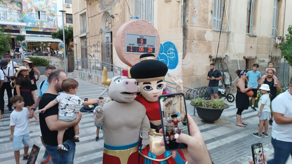 Στο σημείο βρίσκονται οι μασκότ της διοργάνωσης, Αριάδνη και Μινώταυρος, για να παρελάσουμε όλοι μαζί στο κέντρο του Ηρακλείου και να αρχίσουμε να μπαίνουμε από τώρα σε αγωνιστικούς ρυθμούς.