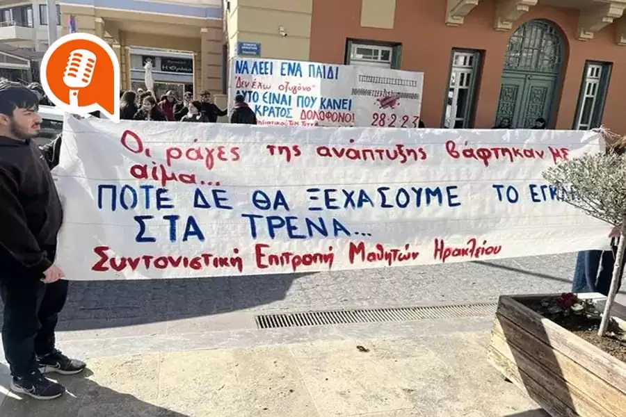 Ο Δημήτρης, μαθητής του 2ου ΓΕΛ Ηρακλείου, μιλά για τη σημερινή μαθητική κινητοποίηση ενάντια στην συγκάλυψη του εγκλήματος στα Τέμπη.