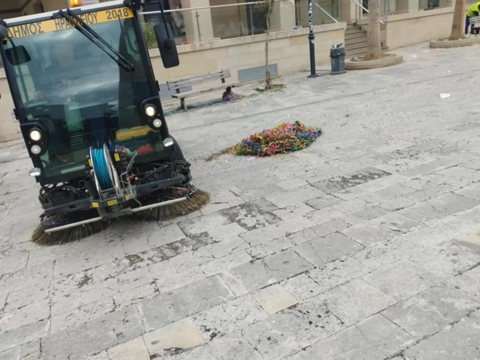 Με το τέλος της καρναβαλικής παρέλασης, πάντως, ξεκίνησε και η επιχείρηση καθαρισμού από μηχανήματα και το προσωπικό της Υπηρεσίας Καθαριότητας του Δήμου, ώστε ν’ απομακρυνθούν τα απορρίμματα από τους κεντρικούς δρόμους του Ηρακλείου.