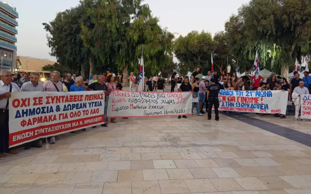 Συλλαλητήριο ενάντια στο νέο εργασικό νομοσχέδιο που φέρνει την νομιμοποίηση της 13ωρης εργασίας, πραγματοποιείται στο Ηράκλειο.