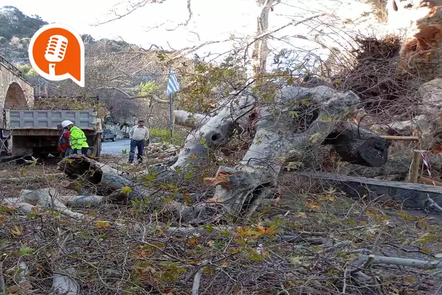 Μιλώντας στο Θέμα Κρήτης 103.1 και στην εκπομπή «Πίσω Σελίδες» με τον Μάριο Διονέλλη, τονίζει ότι το κομμάτι που έπεσε είναι μεγάλο με αποτέλεσμα το μνημείο να πάθει σοβαρή ζημιά, επισημαίνοντας την ανάγκη άμεσων μέτρων για να σωθεί ο αιωνόβιος πλάτανος.