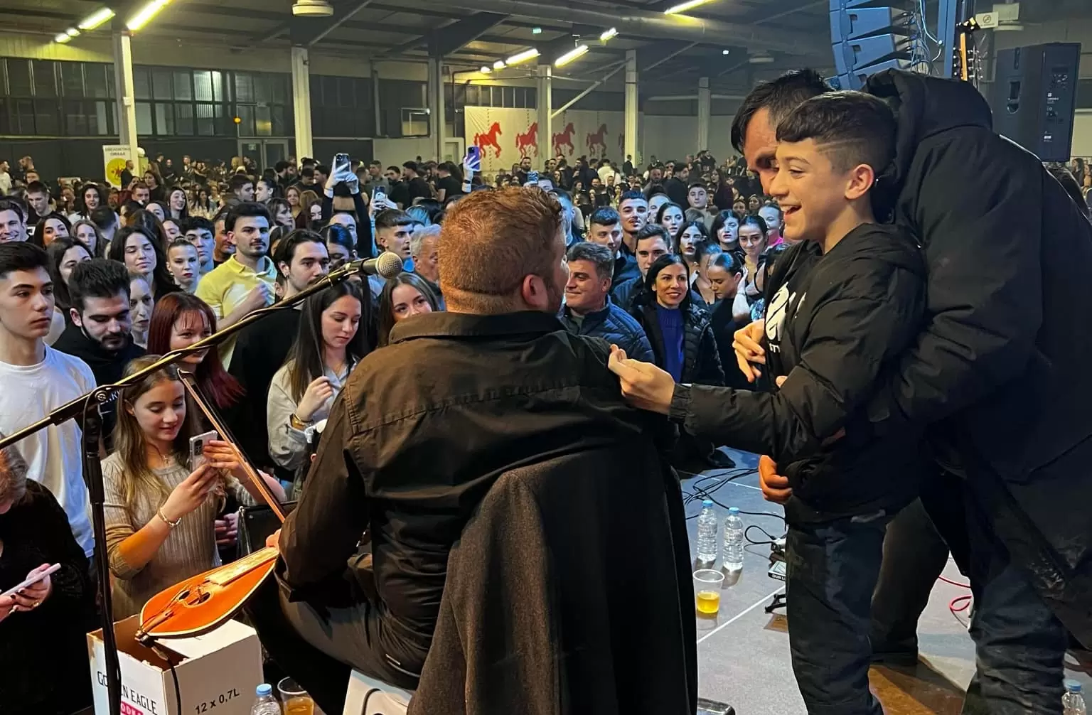 Το γλυκύτατο αυτό πλάσμα δεν ξεχνάει την καταγωγή του και παρευρέθηκε στη μεγάλη χεροεσπερίδα του Σαββάτου (22/02). Προκάλεσε, μάλιστα, ρίγη συγκίνησης όταν ανέβηκε στη σκηνή, είπε τη μαντινάδα του και αγκάλιασε το γνωστό κρητικό καλλιτέχνη.