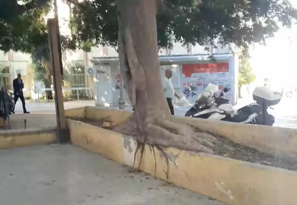 Όπως φαίνεται στις φωτογραφίες που έστειλε ακροατής στο «ΘΕΜΑ Κρήτης», οι ρίζες του δέντρου έχουν «σηκώσει» το χώμα, ενώ ήδη βρίσκονται έξω από τον οριοθετημένο χώρο.