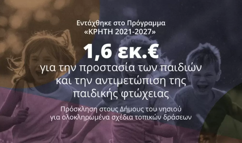 Την πρόσκληση για την υποβολή προτάσεων στη δράση «Ολοκληρωμένα Σχέδια Τοπικών Δράσεων για την προστασία των παιδιών και για την αντιμετώπιση της παιδικής φτώχειας στην Περιφέρεια Κρήτης» υπέγραψε ο Περιφερειάρχης Κρήτης Σταύρος Αρναουτάκης.