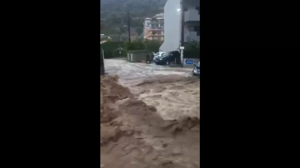 Χείμαρροι στους δρόμους… Μια σφοδρή νεροποντή στο Παλαιόκαστρο Ηρακλείου δημιούργησε πολλά προβλήματα, αφού το νερό διαπερνάει σαν… ποτάμι τους δρόμους. Για αρκετή ώρα η κατάσταση ήταν δύσκολη και υπήρχαν κάτοικοι, που δεν μπορούσαν να βγουν από τα σπίτια τους.