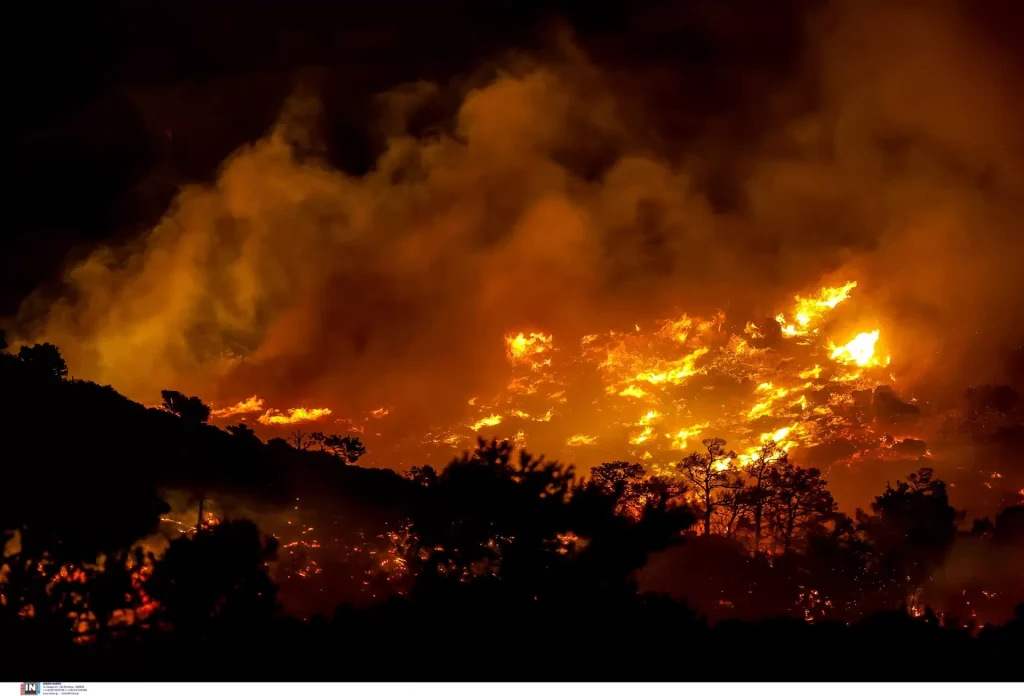 Οι ισχυροί άνεμοι που πνέουν στο νησί καθιστούν δύσκολο το έργο κατάσβεσης των πυρκαγιών.