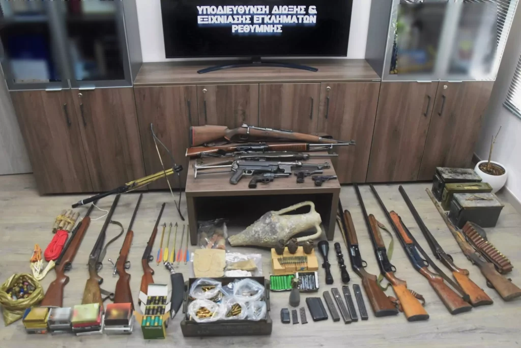 Συνελήφθη χθες (16.10.2025) το πρωί σε περιοχή του Δήμου Αγίου Βασιλείου από αστυνομικούς της Υποδιεύθυνσης Δίωξης και Εξιχνίασης Εγκλημάτων Ρεθύμνης 77χρονος ημεδαπός κατηγορούμενος για παραβάσεις της Νομοθεσίας περί όπλων και Περί Προστασίας Αρχαιοτήτων και της εν γένει Πολιτιστικής Κληρονομιάς.Ειδικότερα, στο πλαίσιο στοχευμένων ενεργειών και ειδικών δράσεων, που εκπονεί η Διεύθυνση Αστυνομίας Ρεθύμνης για την καταπολέμηση της παράνομης οπλοκατοχής και κατόπιν αξιοποίησης πληροφοριών που περιήλθαν στην ανωτέρω Υπηρεσία, χθες 16.10.2025 το πρωί πραγματοποιήθηκε συντονισμένη αστυνομική επιχείρηση κατά την διάρκεια της οποίας πραγματοποιήθηκαν έρευνες στην οικία του ημεδαπού και σε διάφορους χώρους που χρησιμοποιεί.Κατά τη διάρκεια των ερευνών βρέθηκαν και κατασχέθηκαν:
