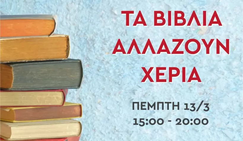Εκατοντάδες βιβλία θα χαρίσει στο κοινό η Δημοτική Βιβλιοθήκη Χανίων κατά τη διάρκεια της εκδήλωσης με τίτλο: «Τα βιβλία αλλάζουν χέρια!».