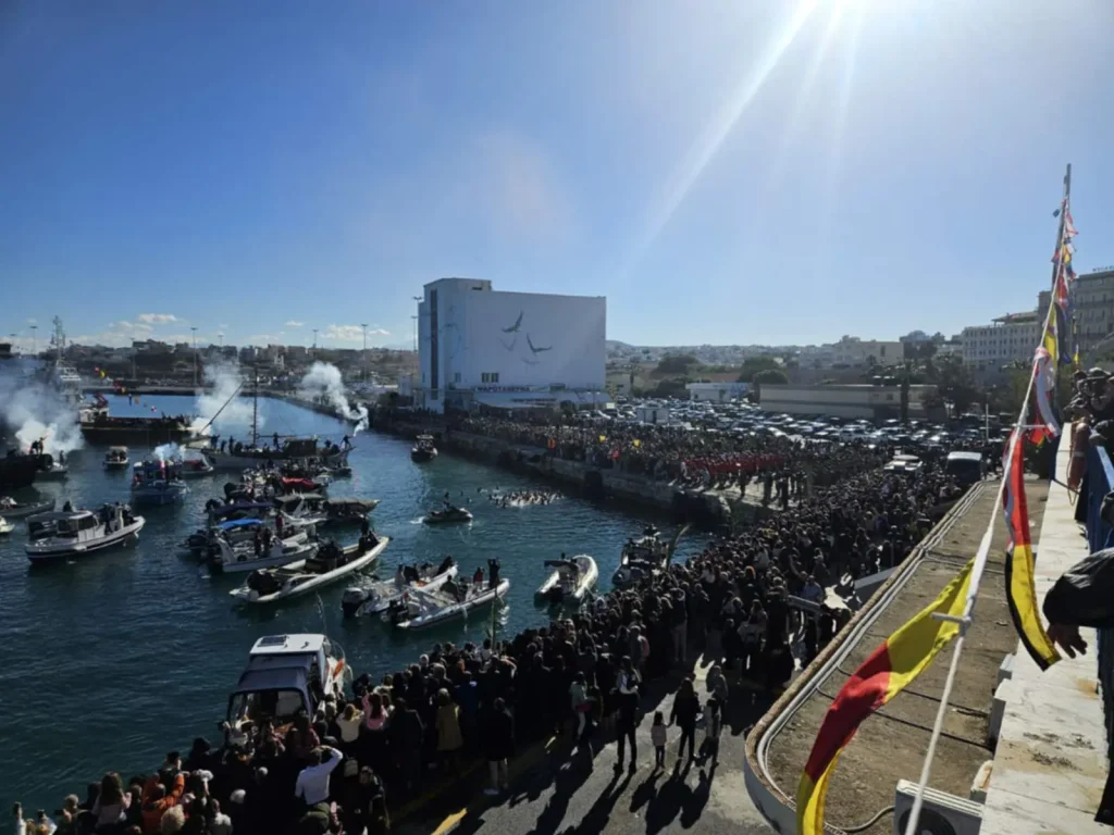 Με καλό καιρό βούτηξαν φέτος στο λιμάνι του Ηρακλείου για να πιάσουν τον σταυρό, δεκάδες άνθρωποι. Ο αστυνομικός Γιώργος Σταυρουλάκης ήταν αυτός που έπιασε το σταυρό και μάλιστα ήταν η πρώτη φορά που έπεφτε στα νερά του λιμανιού για τον ιερό αυτό σκοπό.