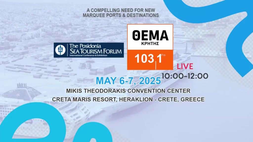 Το Θέμα Κρήτης 103.1 θα παρακολουθήσει το 8ο Posidonia Sea Tourism Forum και η Μαρία Σπυριδάκη σήμερα και αύριο θα κάνει live εκπομπές από τις 10 το πρωί ως τις 12 το μεσημέρι από το Creta Maris Resort Hotel, που φιλοξενεί το σπουδαίο αυτό διήμερο Forum.