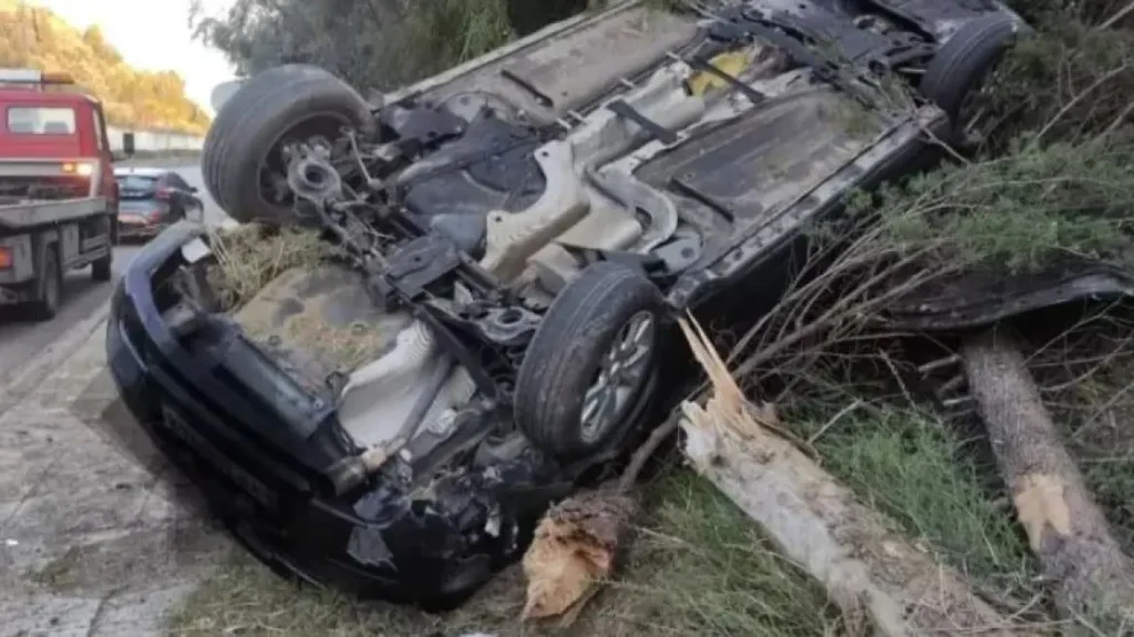 Tροχαίο ατύχημα με ανατροπή ενός οχήματος σημειώθηκε στα Χανιά, στον κόμβο Δραπανιά.