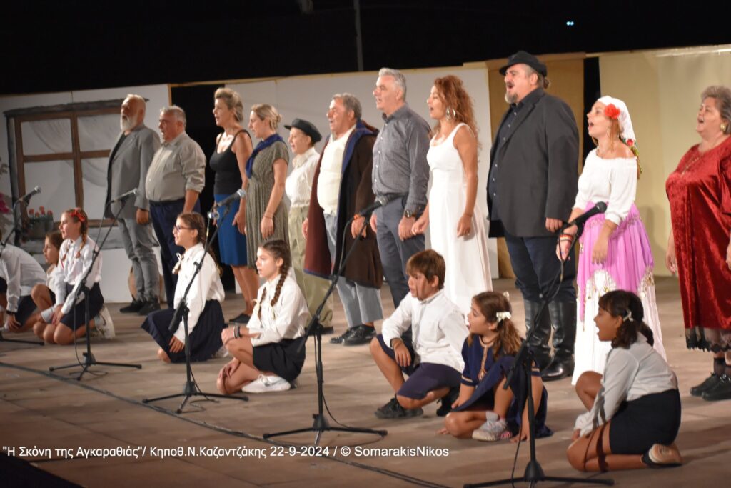 Στο κατάμεστο Κηποθέατρο Ν. Καζαντζάκης παίχτηκε την Κυριακή στις 22 Σεπτεμβρίου η παράσταση του θεατρικού έργου του Μάνου Ταμιωλάκη «Η Σκόνη της Αγκαραθιάς», που σκηνοθέτησε η Ευδοξία Κλεισαρχάκη.