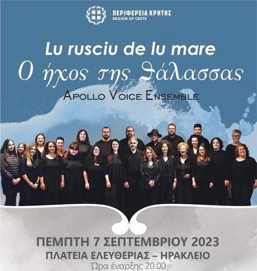 «Ο ήχος της θάλασσας» – Lu rusciu de lu mare είναι ο τίτλος της παράστασης που παρουσιάζει την Πέμπτη 7 Σεπτεμβρίου στην πλατεία Ελευθερίας το Apollo Voice Ensemble.