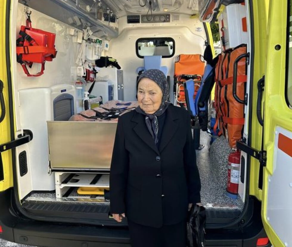 Η Αθηνά Παπαχρήστου είναι μια συνταξιούχος αγρότισσα που ζει στο Μεσολόγγι. Δώρισε το ασθενοφόρο στο ΕΚΑΒ με τον όρο ότι αυτό θα καλύπτει αποκλειστικά τις ανάγκες του νοσοκομείου Μεσολογγίου.
