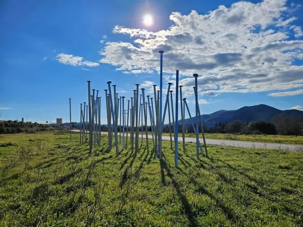 Το έργο «58 καρφιά στα Τέμπη» αποτελούνταν από 58 μεταλλικούς σωλήνες ύψους 2-2,5 μέτρων.