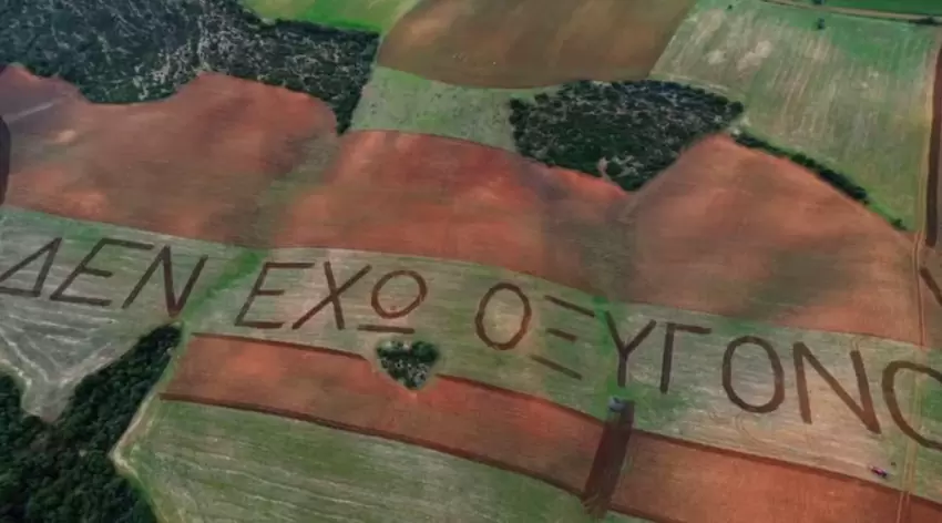 Σε μία συγκινητική συμβολική κίνηση, ο Κριστιάν Ρούτσι, ο οποίος έχασε τον αδελφό του από το δυστύχημα στα Τέμπη, χάραξε σε τεράστια γραμματοσειρά το σύνθημα «Δεν Έχω Οξυγόνο» σε αγροτική έκταση 100 στρεμμάτων, λίγο έξω από τη Θεσσαλονίκη.