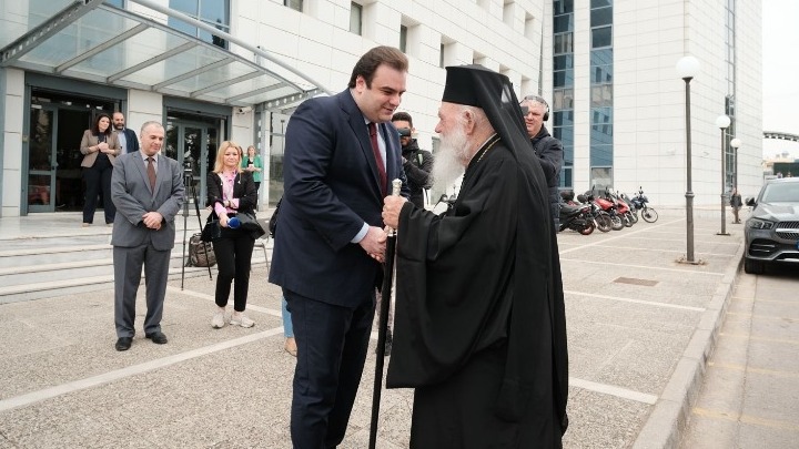 Εθιμοτυπική συνάντηση πραγματοποίησαν νωρίτερα σήμερα, Τρίτη, ο Αρχιεπίσκοπος Αθηνών Ιερώνυμος και ο υπουργός Παιδείας, Θρησκευμάτων και Αθλητισμού, Κυριάκος Πιερρακάκης, στο κτίριο του υπουργείου.