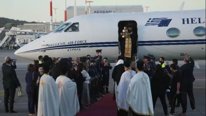 Στο αεροδρόμιο σε κλίμα κατάνυξης, πραγματοποιήθηκε μια μικρή τελετή στην οποία συμμετείχαν σύλλογοι και αγήματα των Ενόπλων Δυνάμεων.