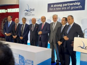 Πραγματοποιήθηκε η εκδήλωση ολοκλήρωσης της διαδικασίας μεταβίβασης του πλειοψηφικού ποσοστού του μετοχικού κεφαλαίου του Οργανισμού Λιμένος Ηρακλείου στην κοινοπραξία των εταιρειών “Grimaldi” και “Μινωικές Γραμμές”.