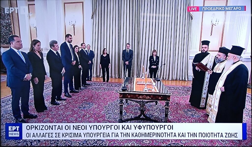 Ενώπιον της Προέδρου της Δημοκρατίας Κατερίνας Σακελλαρόπουλου και παρουσία του πρωθυπουργού Κυριάκου Μητσοτάκη ορκίστηκαν οι νέοι Υπουργοί και Υφυπουργοί του μίνι ανασχηματισμού.