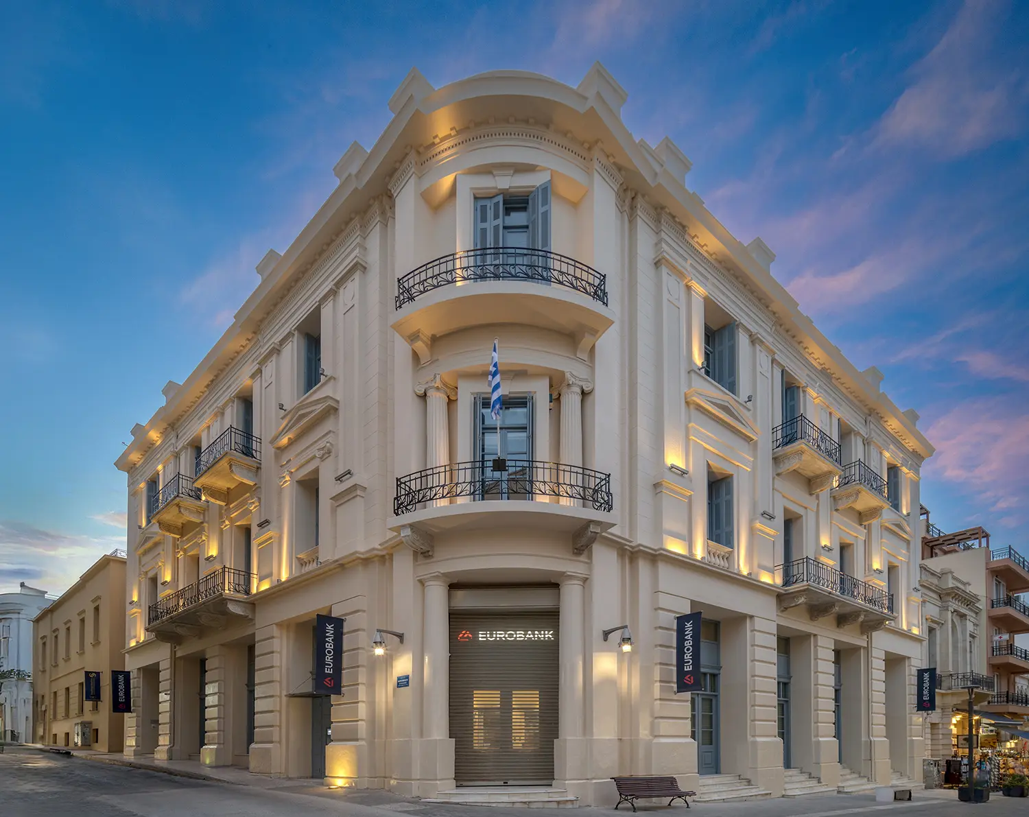 Συνεχίζοντας τις πρωτοβουλίες εξέλιξης του τραπεζικού δικτύου, η Διοίκηση της Eurobank εγκαινιάζει σήμερα στο Ηράκλειο το δεύτερο κατάστημα Νέας Γενιάς (Future Branch) στην Κρήτη και το 14ο συνολικά στη χώρα. Η στρατηγική επέκτασης συνεχίζεται δυναμικά, με επενδύσεις που ενισχύουν τόσο την ψηφιακή όσο και τη φυσική παρουσία της Τράπεζας, προσφέροντας καινοτόμες υπηρεσίες που ανταποκρίνονται στις σύγχρονες ανάγκες των πελατών. Με προηγμένες λειτουργίες που βελτιώνουν την εξυπηρέτηση και ενισχύουν την προσβασιμότητα για Άτομα με Αναπηρία (ΑμεΑ), το νέο κατάστημα ενσωματώνει τις τελευταίες τεχνολογικές εξελίξεις στον τραπεζικό χώρο. Το νέο Future Branch, μαζί με το Επιχειρηματικό Κέντρο Κρήτης και το Private Banking, στεγάζεται στο πλήρως ανακαινισμένο ιστορικό νεοκλασικό κτίριο στη συμβολή των οδών Μαρτύρων 25ης Αυγούστου και Κορωναίου, στο Ηράκλειο. Η αναβάθμιση αυτή δημιουργεί ένα ολοκληρωμένο κέντρο τραπεζικών υπηρεσιών, ενισχύοντας την εξυπηρέτηση των πελατών και τη δυναμική του επιχειρηματικού οικοσυστήματος της Κρήτης.