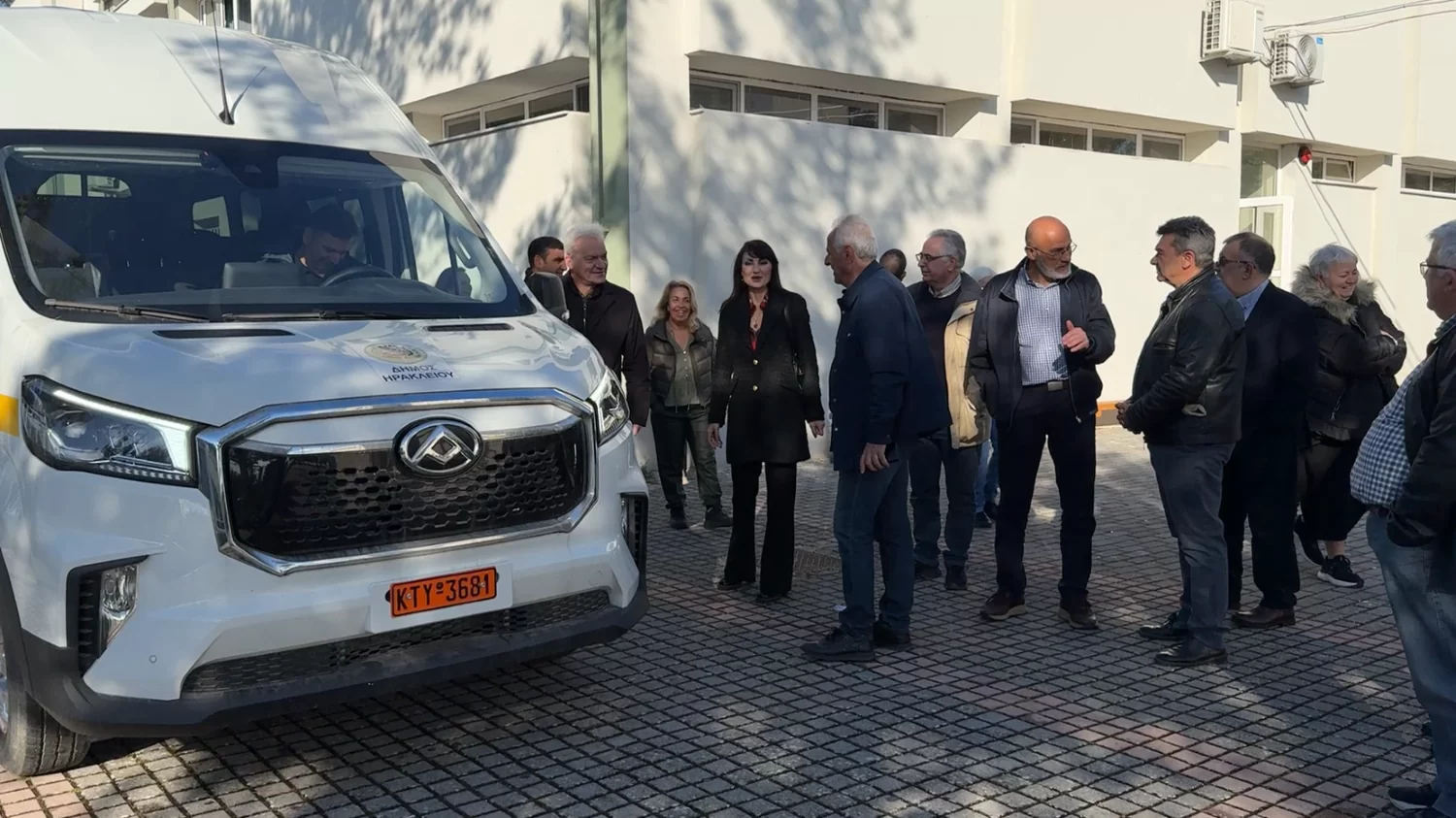 Στον Άγιο Μύρωνα βρέθηκαν νωρίς το πρωί της Πέμπτης 10/4 ο Δήμαρχος Ηρακλείου Αλέξης Καλοκαιρινός με τους Αντιδημάρχους Αναπτυξιακού Προγραμματισμού & Ψηφιακού Μετασχηματισμού Τάσο Τσατσάκη και Παιδείας Αντώνη Περισυνάκη και υπηρεσιακά στελέχη του Δήμου, για την παράδοση ενός νέου ηλεκτρικού λεωφορείου για την μεταφορά των μαθητών του Γυμνασίου και Λυκείου του οικισμού.