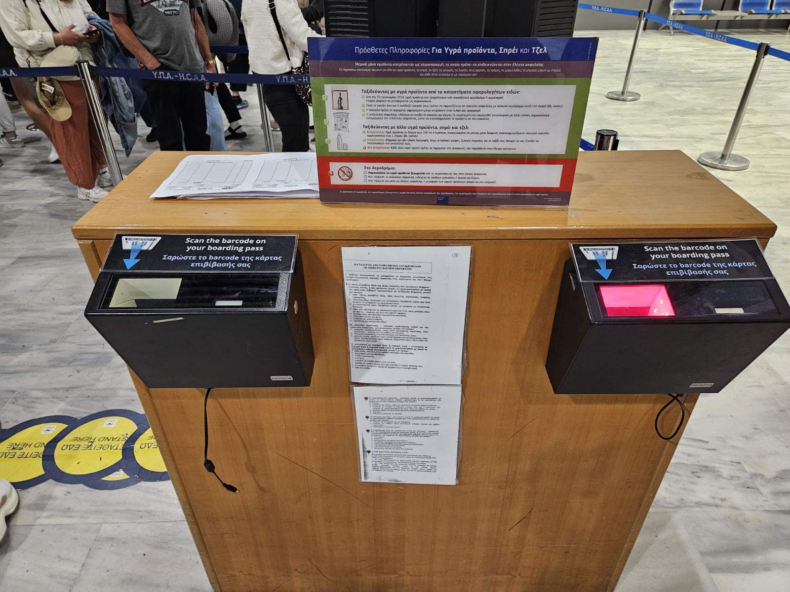 Ο λόγος; Ήταν χαλασμένα και τα δύο μηχανήματα σκαναρίσματος boarding pass, με αποτέλεσμα να υπάρξει μεγάλη καθυστέρηση στο κομμάτι της εξυπηρέτησης.