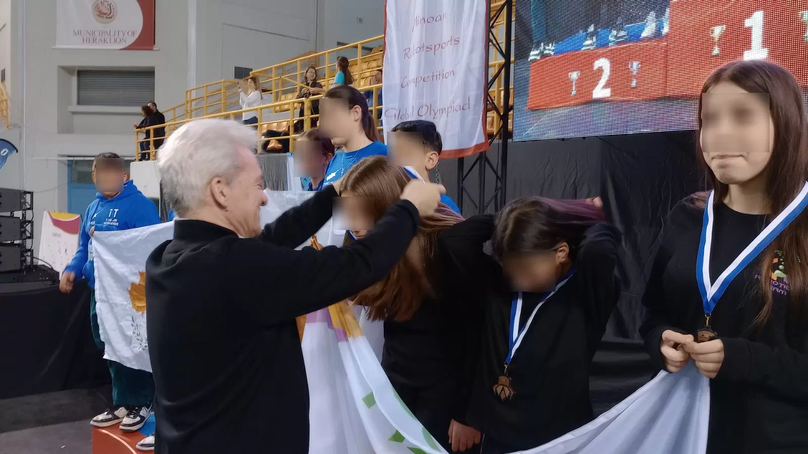 Ο Δήμαρχος Ηρακλείου περιηγήθηκε επίσης στους χώρους όπου εκτίθενται τα επιτεύγματα των μαθητών συνομίλησε μαζί τους και δεν έκρυψε τον εντυπωσιασμό του από τις τεχνολογικές γνώσεις τους, δινόντάς τους συγχαρητήρια όπως και στους εκπαιδευτικούς τους που δίνουν τον καλύτερο εαυτό τους, καθώς και στις οικογένειες που τα στηρίζουν και σε δήλωσή του τόνισε ότι τα παιδιά εκδηλώνουν τη δημιουργικότητά τους και γι αυτό πρέπει να τα ενθαρρύνουμε, καθώς η επόμενη γενιά είναι η ελπίδα μας και η μεγάλη μας επένδυση: «Η Ολυμπιάδα Ρομποτικής στο Κλειστό Γυμναστήριο της Νέας Αλικαρνασσού του Δήμου Ηρακλείου γίνεται σε εθελοντική βάση και συγκεντρώνει πολλά παιδιά από πολλές χώρες. Είναι παιδιά, είναι παιδιά μας, τα παιδιά όλου του κόσμου αλλά ιδιαίτερα είναι τα παιδιά της Ελλάδας τα παιδιά, της Κρήτης, τα παιδιά της πόλης του Ηρακλείου που δείχνουν δημιουργικότητα και αυτό πρέπει να το ενθαρρύνουμε με κάθε τρόπο. Πρέπει να δημιουργούμε με κάθε ευκαιρία τις προϋποθέσεις για να εκδηλώσουν αυτή την δημιουργικότητα. Είναι η επόμενη γενιά, είναι η ελπίδα μας και αυτό είναι και η μεγάλη μας επένδυση. Πιστεύω ότι αυτή η οργάνωση έχει βρει ένα πολύ πρόσφορο έδαφος και έχει μία διεθνή απήχηση που μεγαλώνει χρόνο με το χρόνο. Συνεπώς θα πρέπει κι εμείς αλλά και όλοι μας να την υποστηρίξουμε με όλες μας τις δυνάμεις».
