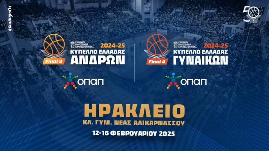Ένα πλούσιο σε μπάσκετ πενθήμερο αρχίζει στο Ηράκλειο Κρήτης την Τετάρτη (12/2) και θα ολοκληρωθεί την Κυριακή (16/2) με την διεξαγωγή των τελικών του ΟΠΑΠ Final 8 Κυπέλλου Ανδρών και ΟΠΑΠ Final 4 Κυπέλλου Γυναικών. Οι φίλαθλοι, η μαζική παρουσία και η ασφάλειά τους είναι σημαντικοί παράγοντες για την επιτυχία και της φετινής διοργάνωσης, που έχει σύνθημα το «Είναι γιορτή».