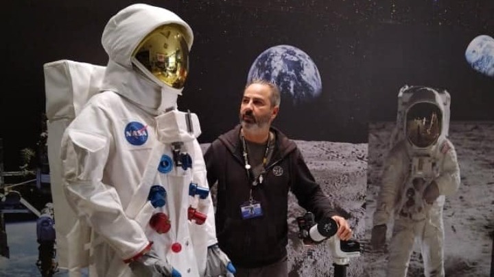 Φωτογραφίζεται δίπλα στη στολή του πρώτου Αστροναύτη Νηλ Άρμστρονγκ που πάτησε στο φεγγάρι. Σε άλλο στιγμιότυπο κρατά μια βιόσφαιρα ή έναν μετεωρίτη που έπεσε στο Μεξικό, ενώ ξέρει απ’ έξω και ανακατωτά τι τρώνε, πώς κοιμούνται και πώς αθλούνται οι αστροναύτες, όπως και σχεδόν όλους τους ήχους τους διαστήματος.
