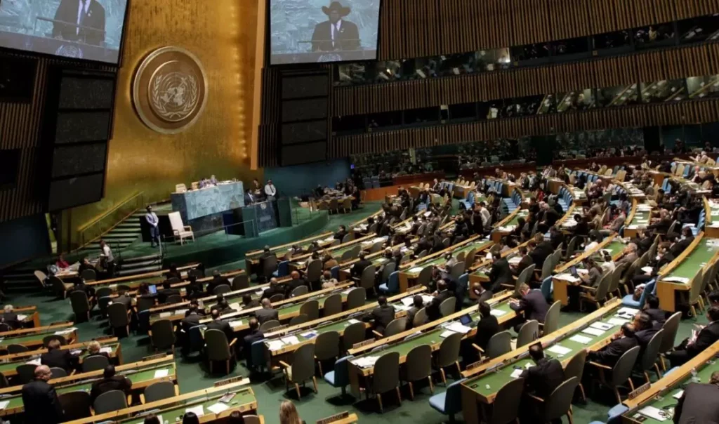 Η Γενική Συνέλευση των Ηνωμένων Εθνών ενέκρινε λίγο νωρίτερα σήμερα με μεγάλη πλειοψηφία δήλωση που περιγράφει «χειροπιαστά, χρονικά περιορισμένα και μη αναστρέψιμα βήματα» προς μια λύση δύο κρατών ανάμεσα στο Ισραήλ και στους Παλαιστίνιους πριν από μια συνάντηση ηγετών από όλο τον κόσμο.