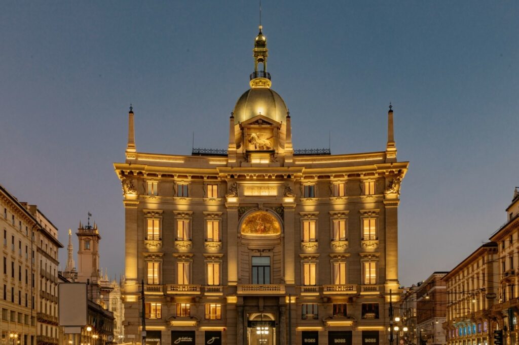 Κι όσο η Piazza Cordusio οφείλει το όνομά της στην κατοικία του Δούκα του Μιλάνου που βρισκόταν εδώ –στα λατινικά «curtis ducis»-, άλλο τόσο οφείλει τη φήμη της στην ξεχωριστή αρχιτεκτονική της ταυτότητα και τα εμβληματικά κτήρια που τη στόλισαν μεταξύ των αρχών του 19ου και τον 20ο αιώνα: νεοκλασικού ή μνημειώδους ύφους, αντικατέστησαν μεσαιωνικές κατασκευές και αποσκοπούσαν να στεγάσουν δημόσιες υπηρεσίες και ιδιωτικές εταιρίες της διαρκώς αναπτυσσόμενης πόλης. Θεαματικότερα όλων, το Palazzo Broggi, πρώην έδρα του Χρηματιστηρίου και μετέπειτα του Κεντρικού Ταχυδρομείου και το Palazzo Venezia, που ανεγέρθηκε την περίοδο 1897-1901 για την Assicurazioni Generali, με εμπνευστή τον Μιλανέζο αρχιτέκτονα και ιστορικό αρχιτεκτονικής, Luca Beltrami. Αληθινά κοσμήματα της πλατείας και ορόσημα της πόλης έκτοτε, το μεν πρώτο στέγασε την μεταcovid περίοδο το λαμπερό, πρώτο κατάστημα και café της αλυσίδας Starbucks στο Μιλάνο, το δε δεύτερο μεταμορφώθηκε σ’ ένα από τα κομψότερα και πολυτελέστερα ξενοδοχεία Gran Meliá, φέροντας κι αυτό τη δική του πρωτιά: με το Hotel Palazzo Cordusio ο όμιλος Meliá Hotels International -με το εντυπωσιακό portfolio των 10 brands και 400 ξενοδοχείων παγκοσμίως- κάνει το ντεμπούτο του στο Μιλάνο, όπως είχε συμβεί 12 χρόνια πριν στη Ρώμη, με το επίσης πεντάστερο Villa Agrippina.