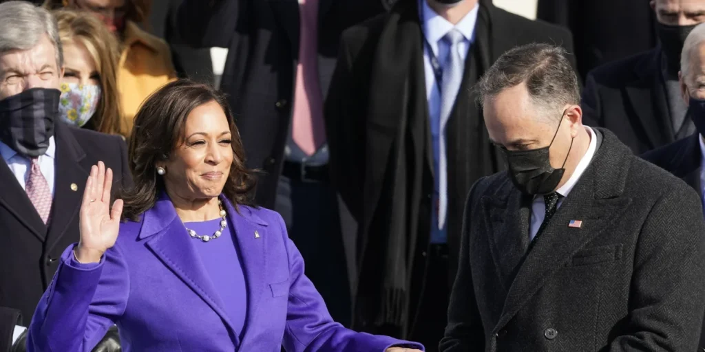 Στην ορκωμοσία του Μπάιντεν, που έγινε στις 20 Ιανουαρίου 2021, η Χάρις ήταν ντυμένη με ένα μωβ σύνολο, σχεδιασμένο από τον Κρίστοφερ Τζον Ρότζερς, με παπούτσια του Σέρτζιο Χάντσον και ένα κολιέ από τον Γουίλφρεντο Ροσάντο.
