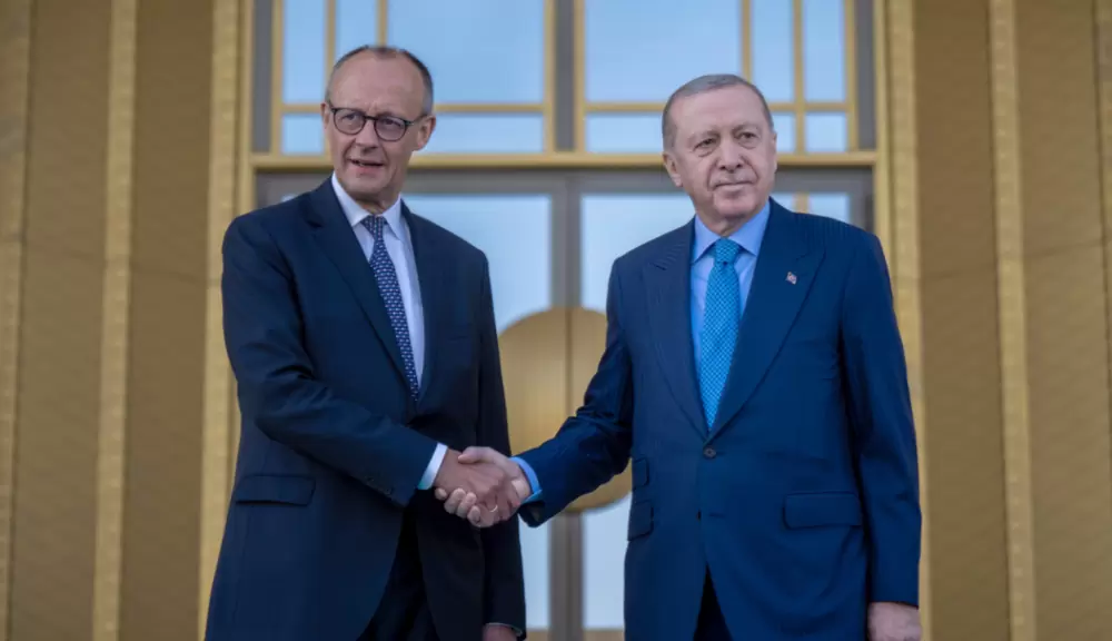 Με κανονιοβολισμούς και έφιππο άγημα υποδέχτηκε στο προεδρικό μέγαρο στην ‘Αγκυρα τον Γερμανό καγκελάριο Φρίντριχ Μερτς ο Ρετζέπ Ταγίπ Ερντογάν. Οι δύο πλευρές συμφώνησαν στη στενότερη αμυντική συνεργασία, ενώ διαφώνησαν δημοσίως όσον αφορά τον πόλεμο στη Γάζα. Στα ευρωτουρκικά η γερμανική πλευρά δήλωσε ότι θέλει την Τουρκία στην ΕΕ, επισήμανε, όμως, πως «ο δρόμος για την ΕΕ περνάει από τα κριτήρια της Κοπεγχάγης». Η επίσκεψη του Γερμανού καγκελάριου στην ‘Αγκυρα είναι η πρώτη από την ανάληψη των καθηκόντων του και έλαβε χώρα μόλις τρεις ημέρες μετά την επίσκεψη του Βρετανού πρωθυπουργού Κιρ Στάρμερ. Πολλά από τα θέματα στην ατζέντα των δύο ηγετών είχαν στην πραγματικότητα δρομολογηθεί και κλείσει από την πρόσφατη επίσκεψη στην τουρκική πρωτεύουσα του Γερμανού υπουργού Εξωτερικών Γιόχαν Βάντεφουλ.